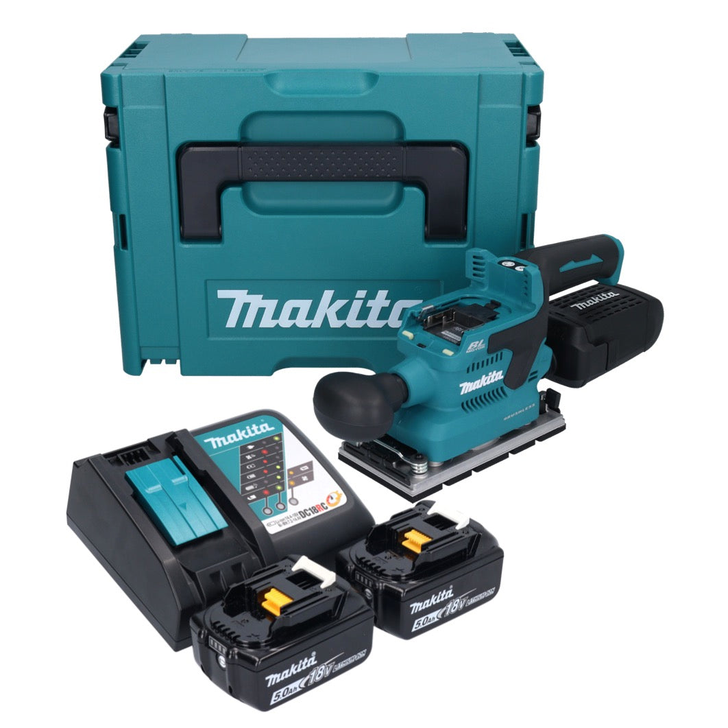 Makita DBO 381 RTJU Akumulatorowa szlifierka oscylacyjna 18 V 93 x 185 mm bezszczotkowa + 2x akumulator 5,0 Ah + ładowarka + Makpac