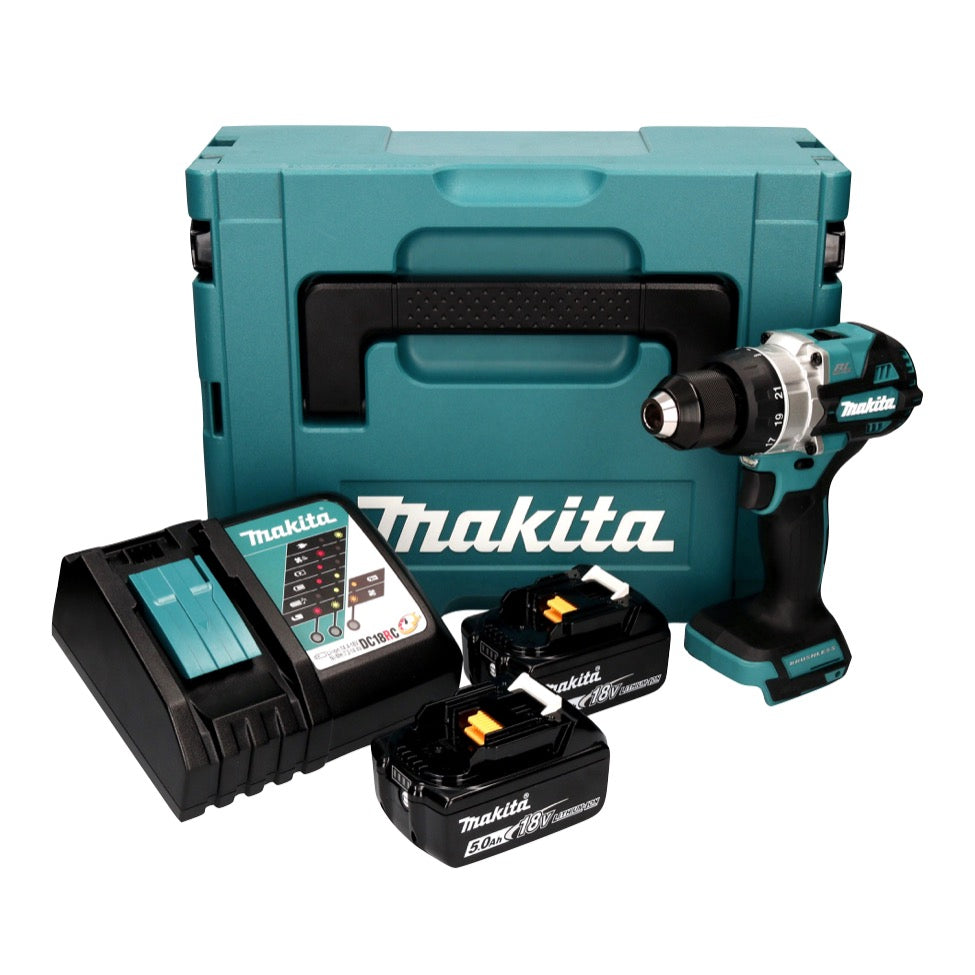 Makita DDF 486 RTJ akumulatorowa wiertarko-wkrętarka 18 V 130 Nm bezszczotkowa + 2x akumulator 5,0 Ah + ładowarka + Makpac