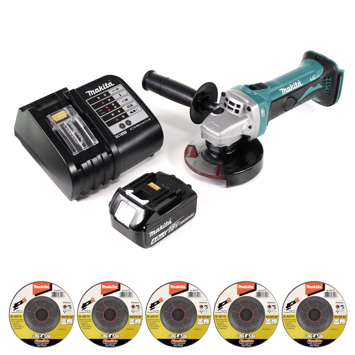 Makita DGA 452 SM1 Akku Winkelschleifer 18V 115mm + 1x Akku 4,0Ah + Ladegerät + 5x Schleifscheibe