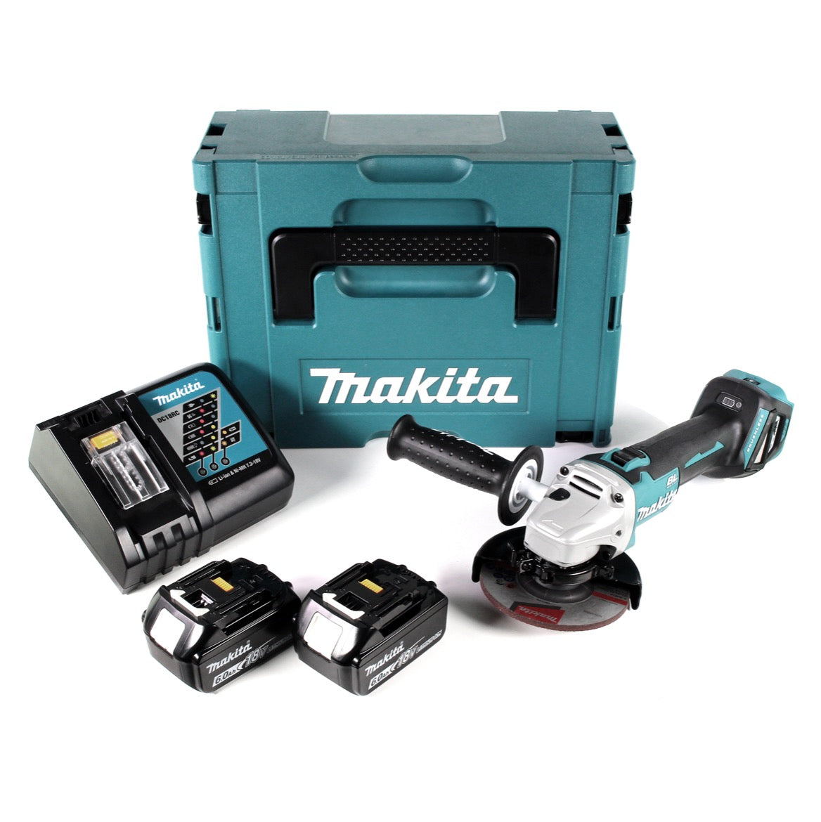 Makita DGA 511 RGJ akumulatorowa szlifierka kątowa 18V 125mm bezszczotkowa + 2x akumulator 6,0Ah + ładowarka + Makpac