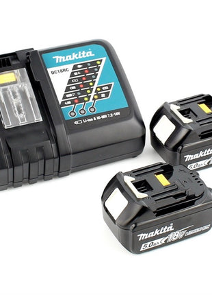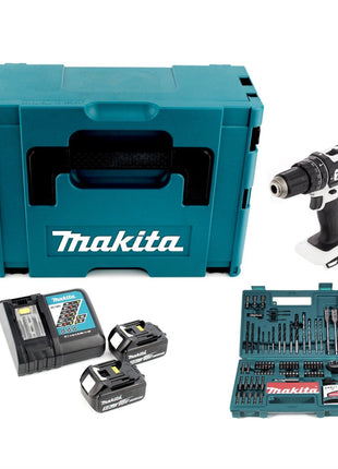 Makita DHP 482 W RTJ - 18 V Li-Ion Akku Schlagbohrschrauber im Makpac + 2x 5,0Ah Akku + Schnellladegerät + Makita B-53811 Bit & Bohrer-Set 100-teilig