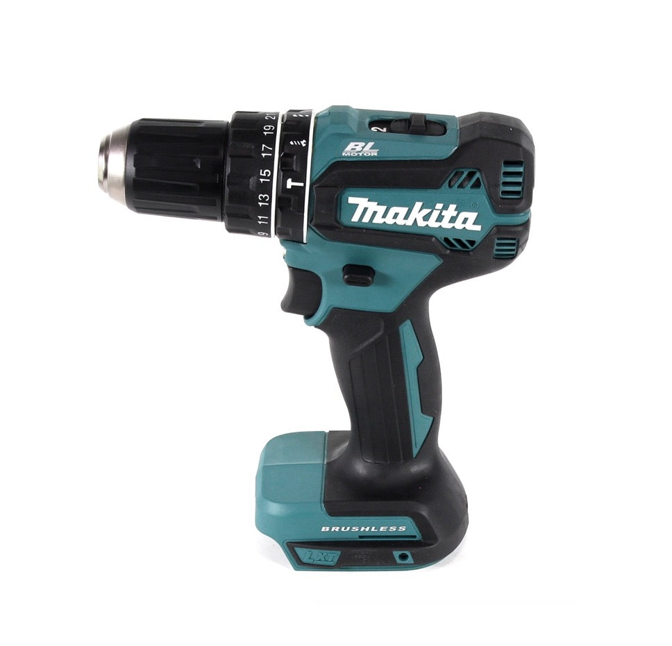 Der Makita DHP 485 Schlagbohrschrauber mit 2-Gang-Vollmetall-Planetengetriebe hat ein abschaltbares Schlagwerk. Der integrierte bürstenlose Motor sorgt für mehr Ausdauer, eine längere Lebensdauer und eine kompaktere Bauweise. Mit leuchtstarker LED. Zudem ist dieser Schlagbohrschrauber durch seine kompakte, kurze Bauform besonders handlich und ermöglicht das Arbeiten an schwer zu erreichenden Stellen. Der DHP 485 hat ganze 21 Drehmomenteinstellungen und damit sehr feinfühlig regulierbar. Der Schlagbohrschrauber ist mit einem Tiefentladeschutz ausgestattet, der das Gerät ausschaltet, sobald der Akku fast leer ist. Makita ist ein führender Elektrowerkzeughersteller und zeichnet sich durch Qualität und Zuverlässigkeit aus. Der Toolbrothers TX Aluminium Werkzeugkoffer bietet ausreichend Platz für eine Maschine ( z.B. einen Schlagbohrschrauber oder Schlagschrauber ), ein Ladegerät und bis zu zwei Akkus. Durch das in der Schublade vorhandene 70 teilige Bit und Bohrer Set sind sämtliche Anwendungen abgedeckt. Es sind Bits, Fräser, Steckschlüssel und Bohrer in vielen Varianten vorhanden. Ob Holz, Metall oder Stein der Koffer beinhaltet eine Vielzahl an Bohrern in den gängigsten Größen. Die gute Verarbeitung des Koffers verspricht eine lange Lebensdauer und ist zudem auch echt schön anzusehen. Der gummierte Tragegriff ist schonend für die Handinnenflächen und kann auch problemlos mit Handschuhen genutzt werden. Die Metallschließen des Koffers sind robust und langlebig. Die Einlagen im Boden und im Deckel gewährleisten einen sicheren Transport der im Koffer befindenden Maschinen. Durch den Aluminium Koffer TX hat man das Arbeitswerkzeug und das entsprechende Zubehör in einem Koffer und sicher gelagert.