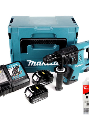Makita DHR 264 2 x 18 V / 36 V Li-Ion SDS Plus Akku-Bohrhammer in Makpac 4 mit Einlage + 2 x 3,0 Ah Akku + 1 x Ladegerät + 5 Bohrer