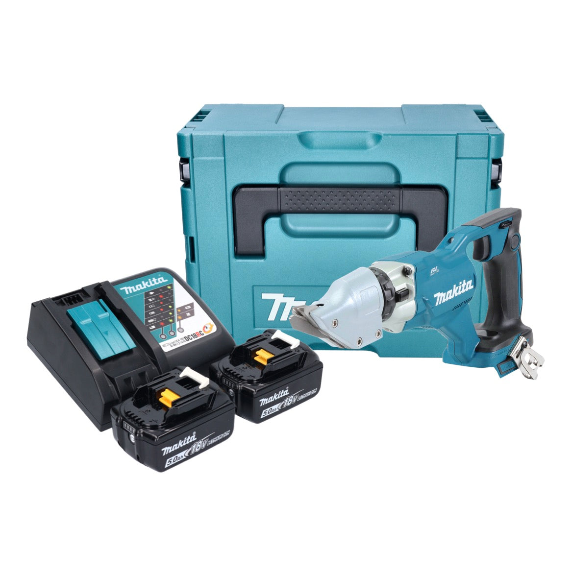 Makita DJS 200 RTJ akumulatorowe nożyce do blachy 18 V 2,0 mm bezszczotkowe + 2x akumulator 5,0 Ah + ładowarka + Makpac