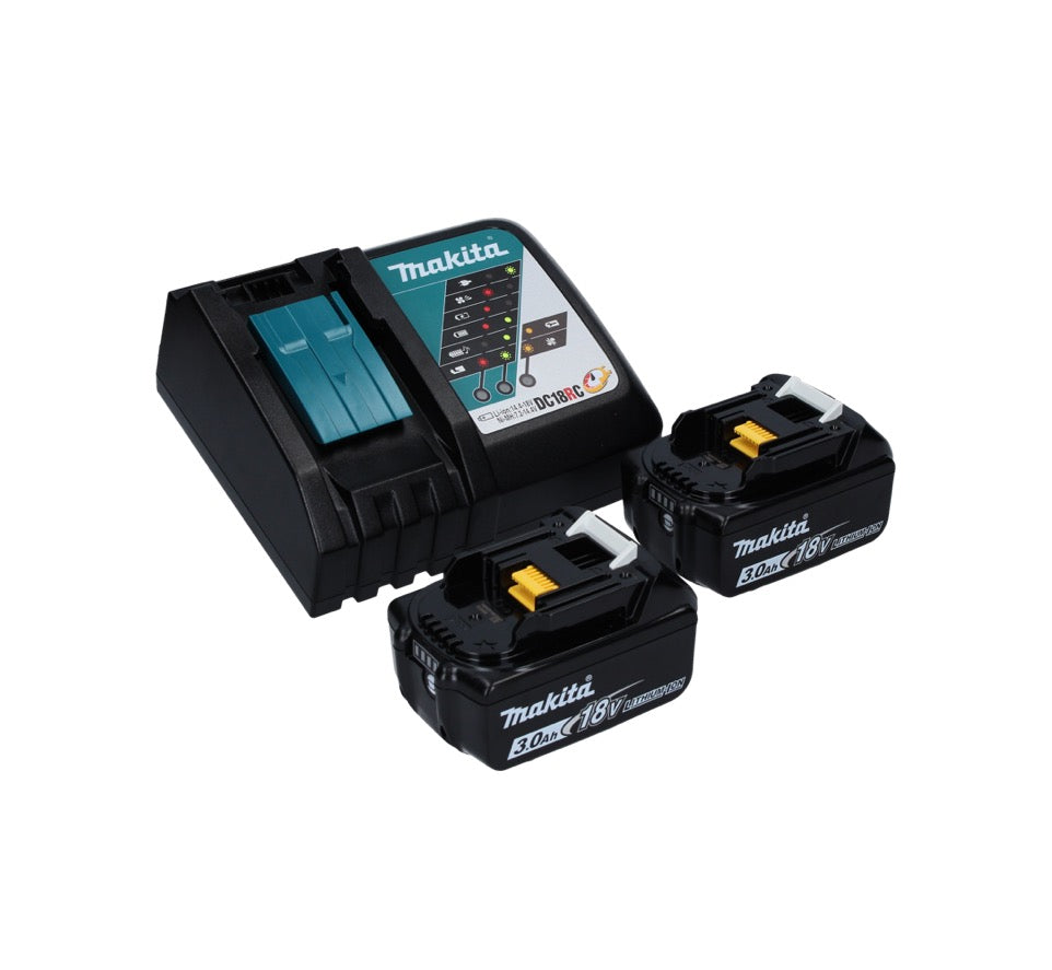 - 1x akumulatorowa kosiarka do trawy Makita DLM 432 - 1x pokrywa akumulatora - 1x kosz na trawę - 1x klucz - 4x elementy mocujące - 1x klucz montażowy - 1x ostrze sierpowe (191D43-8) - 2x akumulator BL 1830 B 3,0 Ah - 18 V ze wskaźnikiem poziomu naładowania LED - 1x szybka ładowarka Makita DC 18 RC 9,6 - 18 V do akumulatora litowo-jonowego (195584-2)
