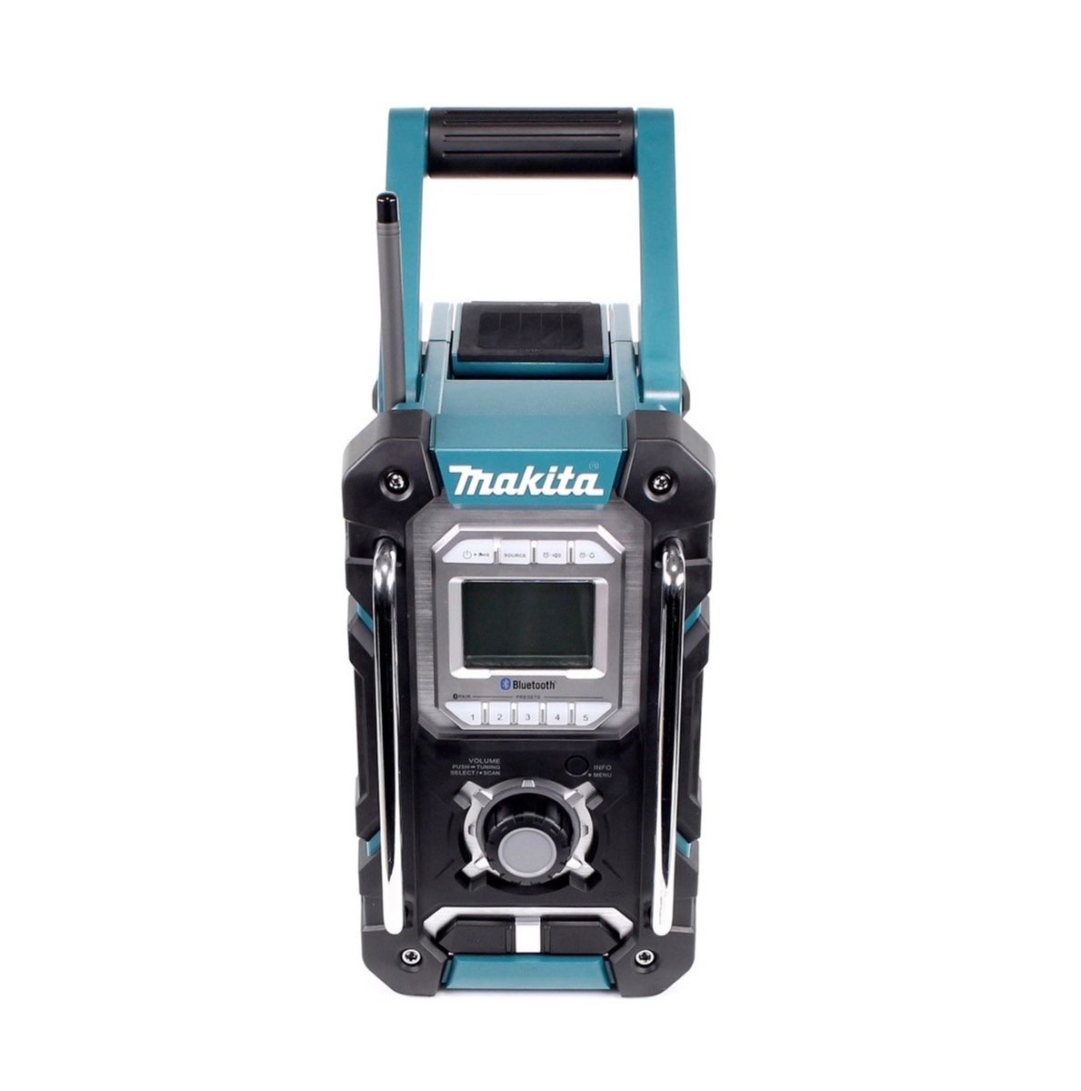 Das DMR 106 Baustellenradio von Makita ist durch sein robustes Gehäuse der ideale Begleiter auf der Baustelle. Das mit einem Tragegriff ausgestattete Gehäuse ist am äußeren Rändern gummiert und jegliche Öffnungen sind staub- und schmutzfest verschlossen und gegen Spritzwasser geschützt. Ein großes LCD-Display macht die Sendereinstellung zum Kinderspiel. Der Sendersuchlauf und die Lautstärkeregelung werden vereinfacht über einen Drehknopf gesteuert und reduzieren den Umgang mit dem Radio aufs einfachste. Dank des integrierten Bluetooth kann das DMR 106 Mobilgeräte wie Smartphones, Laptops oder Tablets einfach und problemlos abspielen. Die umfangreiche Akku-Aufnahme kann alle gängigen Makita Akkus aufnehmen und macht das DMR 106 zur perfekten Ergänzung zu Ihren Makita Akku-Geräten.