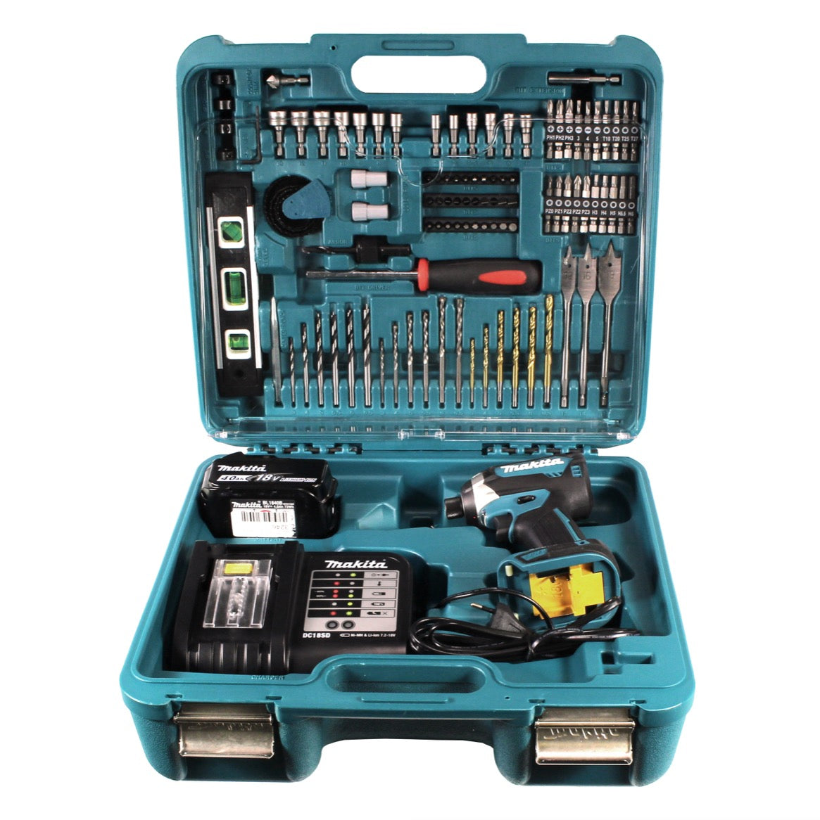 Makita DTD 153 SMTK Akku Schlagschrauber 18V 170Nm Brushless + 1x Akku 4,0Ah + Ladegerät + 101tlg. Zubehörset im Koffer