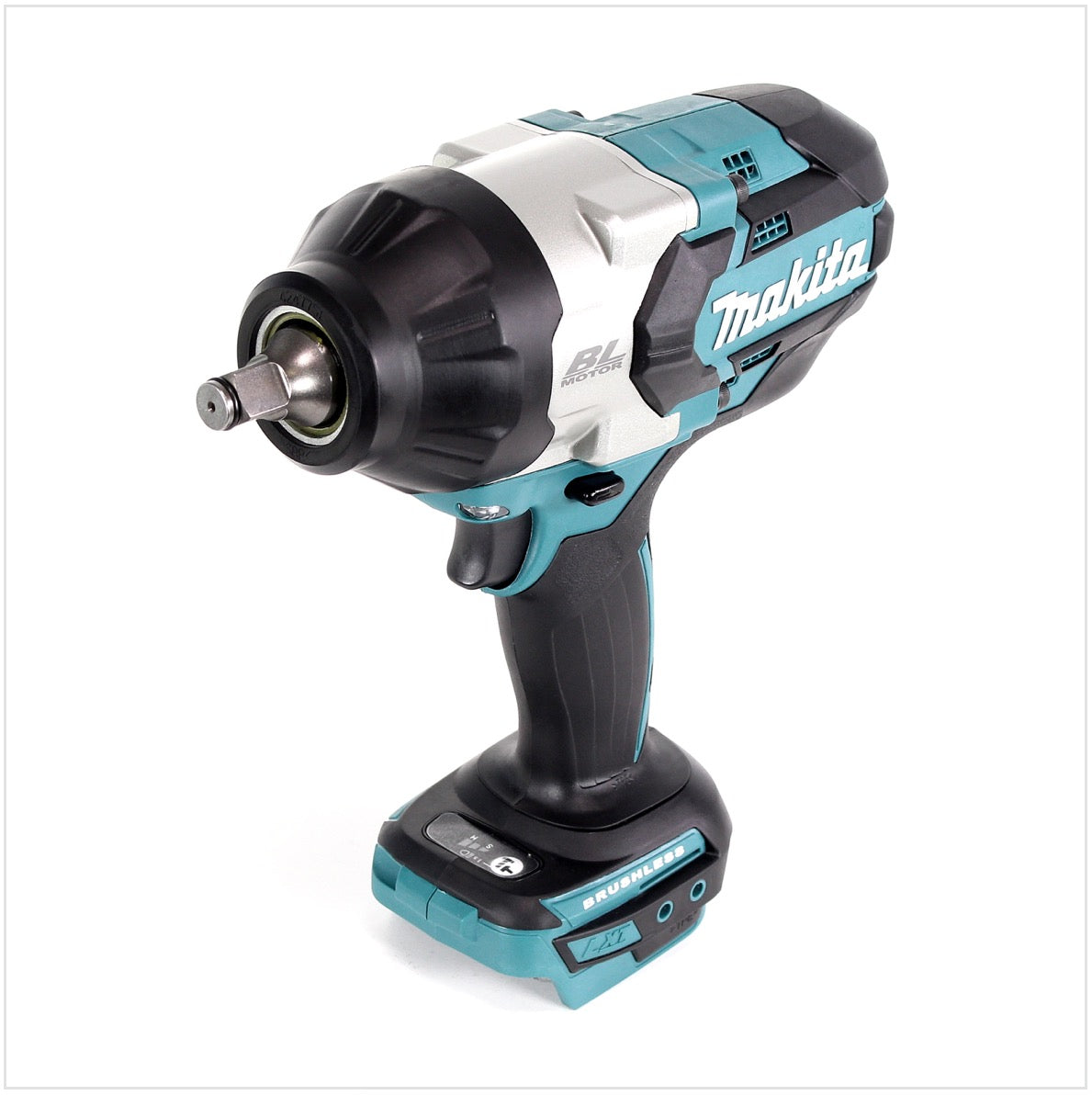 Makita DTW1002 to 18-woltowy, akumulatorowy klucz udarowy z momentem obrotowym 1000 Nm i 3-stopniową regulacją prędkości obrotowej i prędkości udaru. Bezszczotkowy silnik zapewnia większą wytrzymałość, dłuższą żywotność i bardziej kompaktową obudowę, dzięki czemu pełna moc urządzenia może być nadal efektywnie wykorzystywana. Klucz udarowy imponuje drobnymi szczegółami technicznymi, takimi jak elektroniczny hamulec silnika chroniący nadgarstki lub zintegrowane podwójne światło LED oświetlające miejsce pracy. Ten następca modelu DTW 450 to prawdziwa potęga. W przeciwieństwie do DTW1001, model ten posiada uchwyt narzędziowy 1/2".
