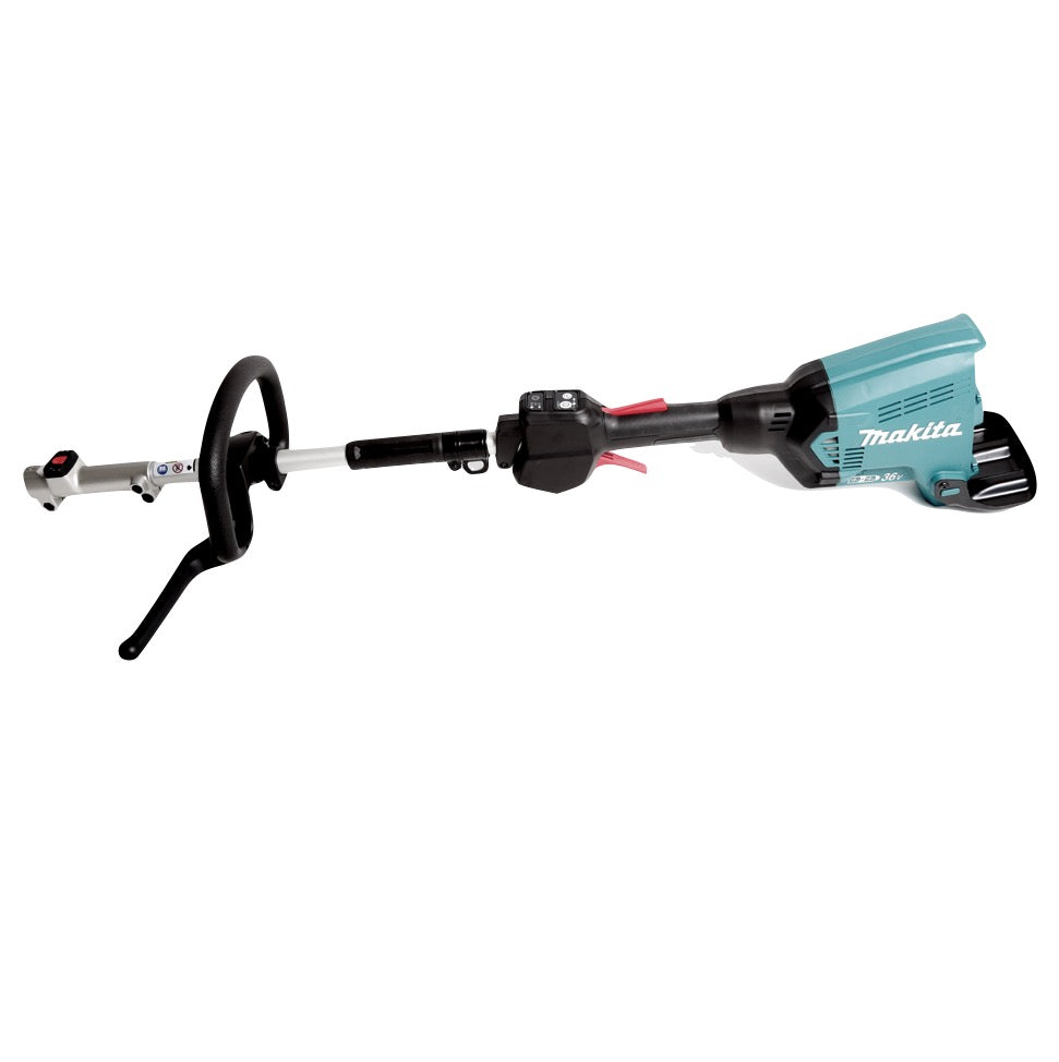 Umweltschonend und extrem kraftvoll, dass ist der DUX 60 Multifunktionsantrieb von Makita. Über 10 verschiedene Aufsätze ( nicht im Lieferumfang ) können angesteckt werden. Somit ist die Kosteneffizienz unschlagbar, man benötigt lediglich den passenden Aufsatz und keine Vielzahl an Geräten. Ob als Heckenschere, Kettensäge, Rasentrimmer, Sense, Bodenschneider oder Kehrbesen es scheint so als ob er alles kann. Alle Einsatzwerkzeuge sind komplett werkzeuglos wechselbar. Zwei 18 Volt Akkus ( nicht im Lieferumfang ) versorgen das Gerät mit extrem viel Power. Es ist empfohlen immer zwei gleiche Akkus zu verwenden. Makita hat den DUX 60 Multifunktionsantrieb mit der neusten Technologie ausgestattet, so ist er mit Xtreme Protect Technologie ( XTP ) optimal gegen Staub und Spritzwasser geschützt. Der leistungsstarke Motor verfügt über die Active Feedback sensing Technologie, welche das Gerät sofort beim Blockieren stoppt. Die dreistufige elektronische Drehzahlregulierung ist für sämtliche Anwendungen ausgelegt. Die Drehrichtungsumkehr ermöglicht die Entfernung von Grasschnitt. Der höhenverstellbare Rundgriff am Gerät ist individuell einstellbar auf Körpergröße, Aufsätze und die gegebenen Arbeitsbedingungen. Durch den im Lieferumfang enthaltenen Schultergurt ist ein kraftsparendes Arbeiten möglich.