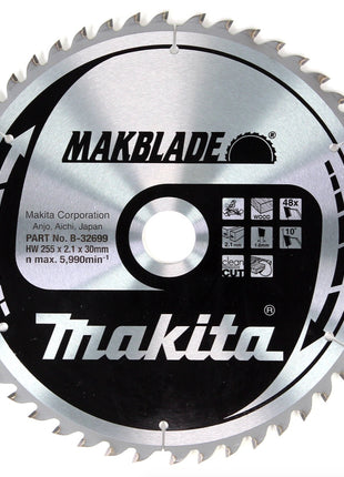 Makita MAKBLADE Kreissägeblatt für Holz 255 x 30 x 2,1 mm 48 Zähne ( B-32699 )