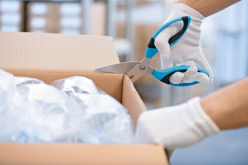 duże nożyczki bezpieczne z przyjaznym dla palców specjalnym szlifem i wieloma dodatkami - wszechstronne narzędzie zarówno do pracy, jak i do domu - nasze uniwersalne narzędzie do profesjonalnego cięcia - idealne dla większych dłoni - lub jeśli pracujesz w rękawicach - karton, papier, folia, tkanina i wiele innych nie mogą się równać z jego mocnymi cięciami - ale jesteś dobrze chroniony - dzięki specjalnemu szlifowi i zaokrąglonym końcówkom - użyj dodatkowego wycięcia na drut do cięcia przewodów i kabli, pazurów na uchwycie do otwierania zapięć
