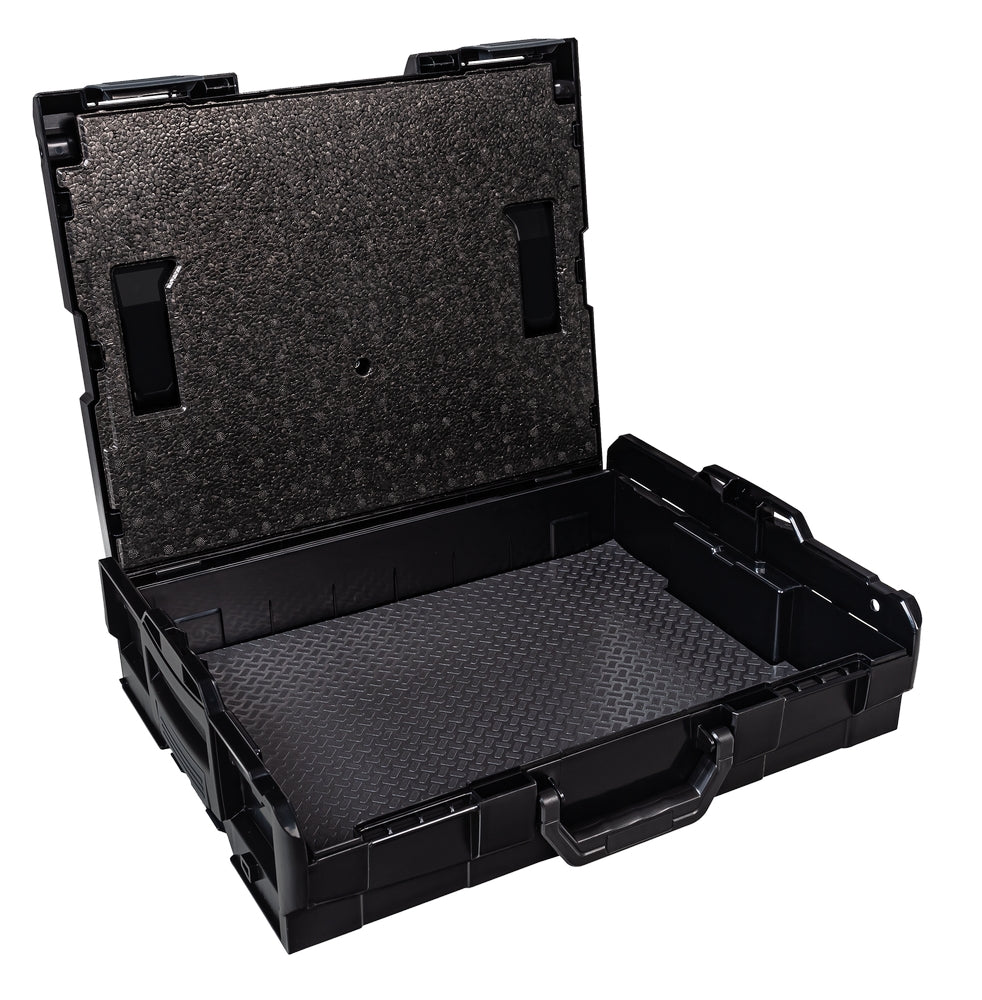 Mata antypoślizgowa LB 102/136 jest szczególnie łatwa w obsłudze. Dzięki niestandardowemu kształtowi jest specjalnie zaprojektowana dla L-BOXX i można ją łatwo do niego włożyć. Mata zapewnia niezawodną ochronę narzędzi, maszyn i innych wrażliwych przedmiotów, pochłaniając wstrząsy i wibracje. Jednocześnie zapobiega zarysowaniom lub wgnieceniom na podłodze, na której umieszczony jest L-BOXX.