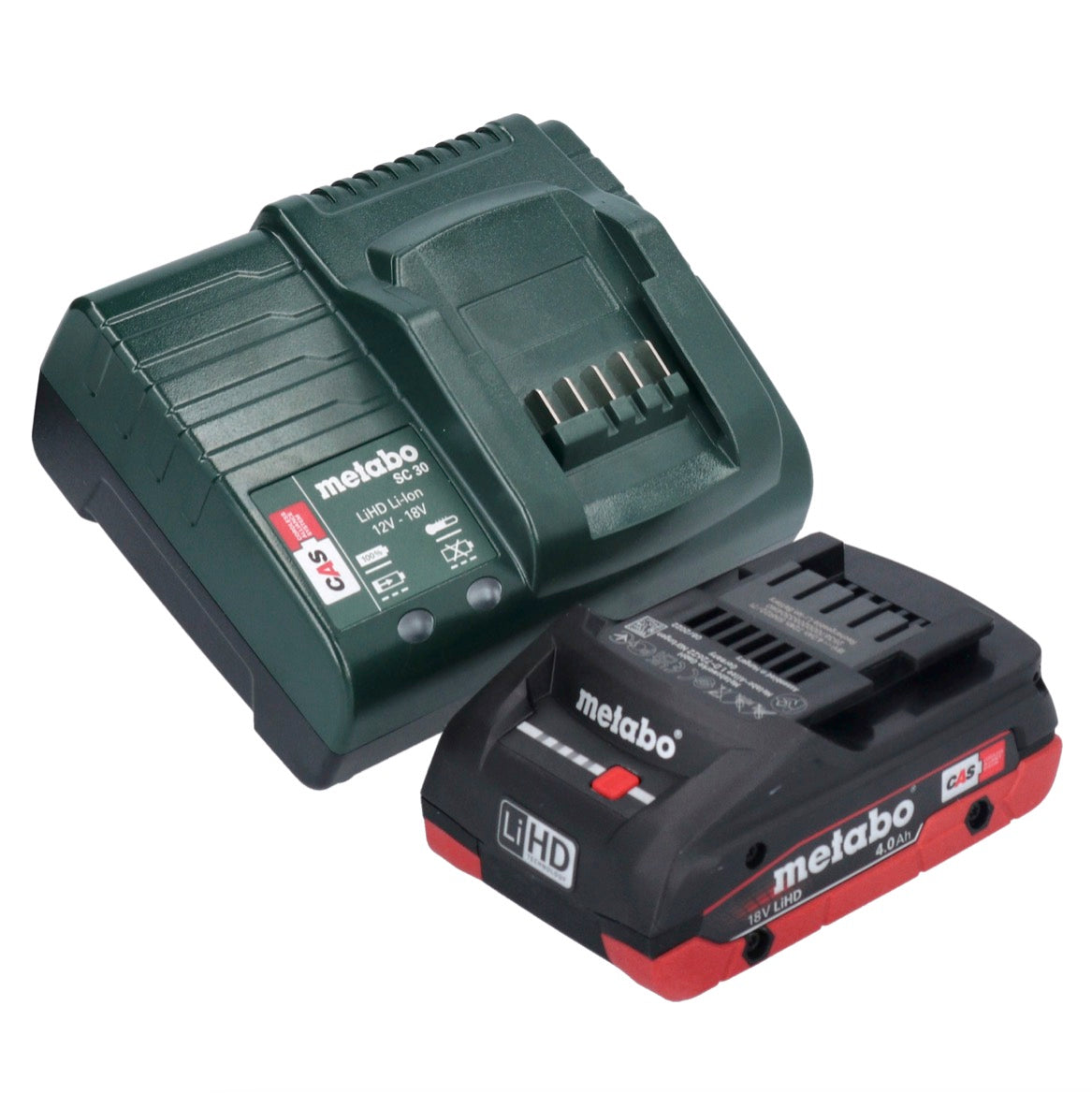 - 1x akumulator Metabo LiHD 18V 4,0Ah Li-Ion ( 625367000 ) system CAS - 1x ładowarka Metabo SC 30 LiHD Li-Ion 12 - 18 V