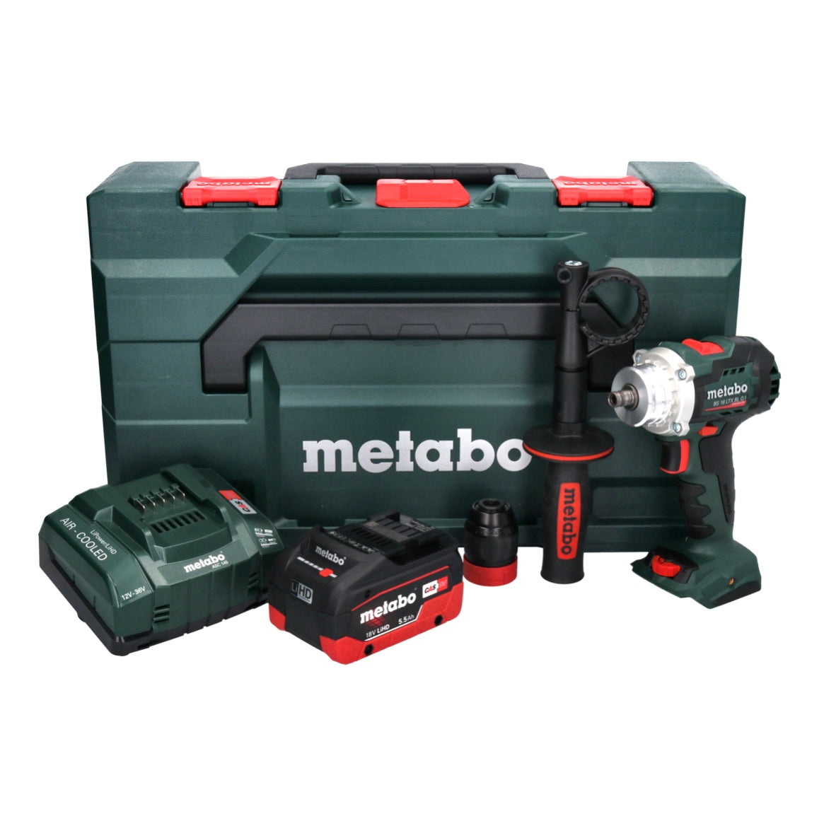 - 1x akumulatorowa wiertarko-wkrętarka Metabo BS 18 LTX BL Q I 18 V - 1x szybkowymienny uchwyt wiertarski - 1x szybkowymienny uchwyt bitów - 1x rękojeść dodatkowa - 1x zaczep do paska i magazyn bitów - 1x metaBOX 145 L - 1x akumulator Metabo LiHD 18V 5,5 Ah Li-Ion ( 625368000 ) CAS system - 1x ładowarka Metabo ASC 145 ( 627378000 )