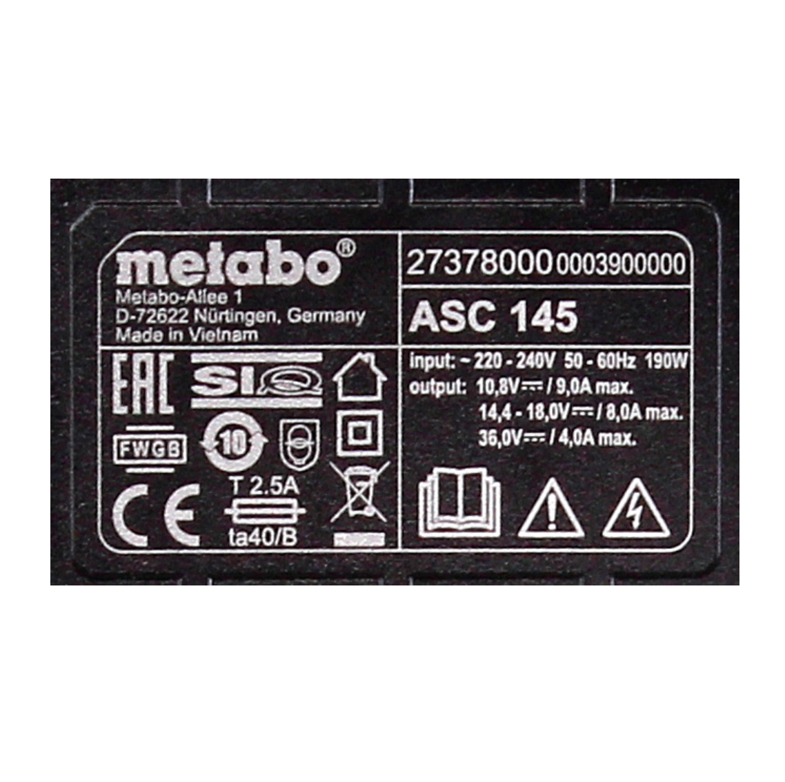 - 1x ładowarka Metabo ASC 145 ( 627378000 )