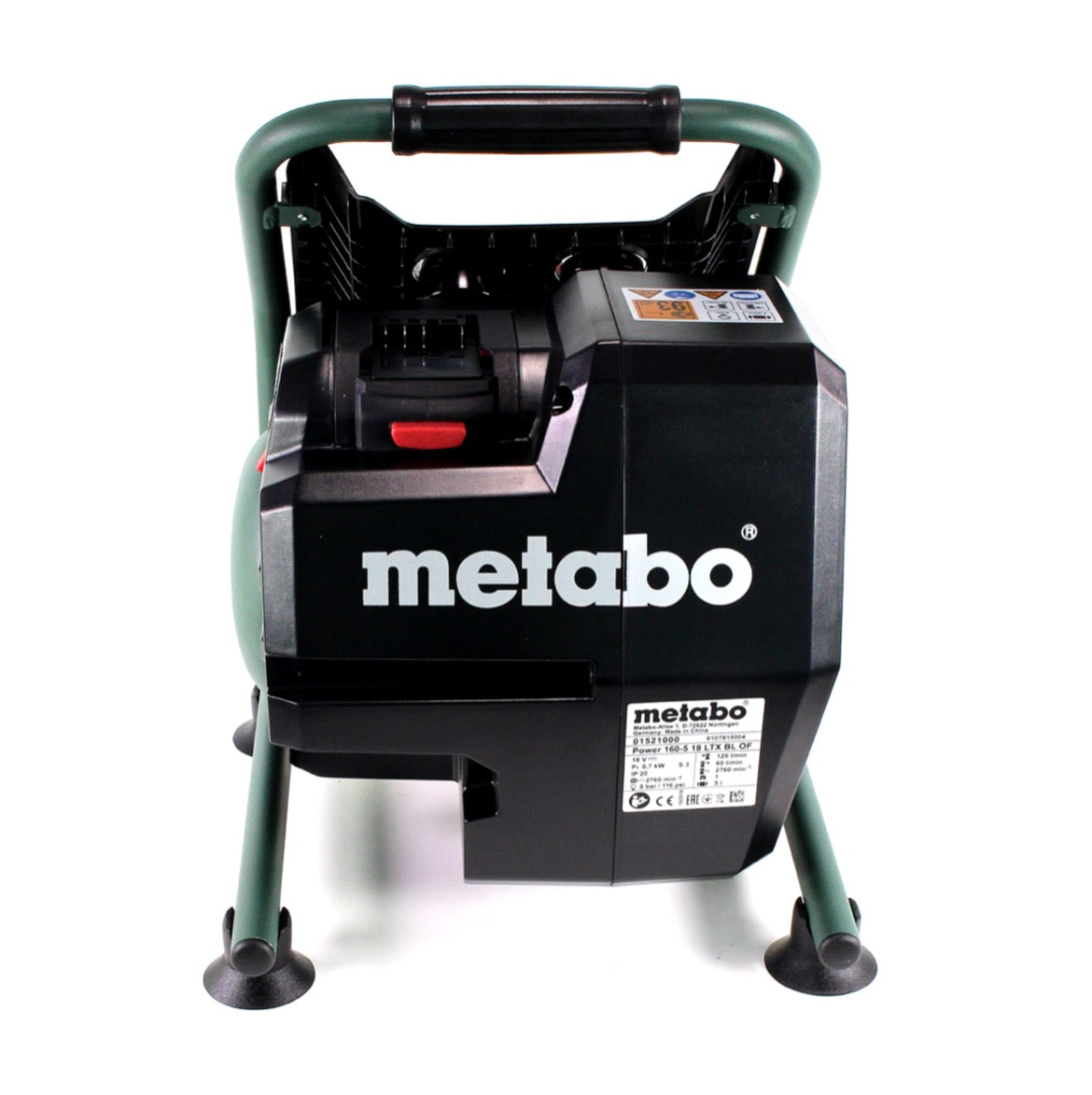 - 1x akumulatorowa sprężarka Metabo :Power 160-5 18 LTX BL OF - 1x uniwersalne szybkozłącze - 1x akumulator Metabo LIHD 18 V 10,0 Ah CAS ( 625549000 ) - bez ładowarki