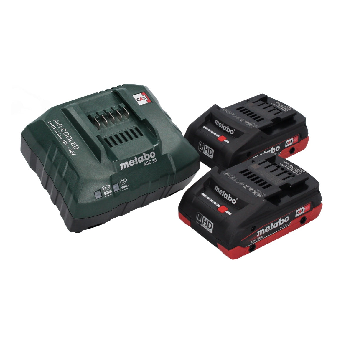 - 1x akumulatorowa wkrętarka udarowa Metabo SSW 18 LTX 800 BL - 2x akumulator litowo-jonowy Metabo LiHD 18V 4.0Ah ( 625367000 ) system CAS - 1x ładowarka Metabo ASC 55 ( 627044000 ) - 1x Metabo metaBOX 145