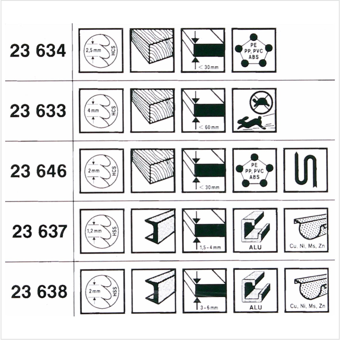 geeignet für: Alu, Cu, Ni, Ms, Zn