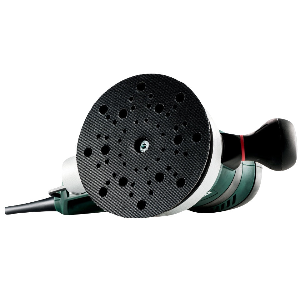Der Metabo SXE 450 TurboTec Exzenterschleifer besticht durch seine patentierte Duo Schwingkreisverstellung. Dies ermöglicht die ideale Einstellung für Feinschliff sowie maximalen Abtrag. Dank der Vario V Elektronik ist eine materialgerechte Drehzahlregulierung vorhanden. Dank der Turbo Boost Funktion kann ein kurzzeitiger Leistungsschub erreicht werden. Des Weiteren sind beim Aufsetzten der Maschine keine Schleifriefen vorhanden. Der Softgrip Griff lässt sich komfortabel bedienen und ermöglicht somit lange Arbeitstage. Das staubgeschützte Kugellager sorgt für eine lange Lebensdauer der Maschine. Das Lagergehäuse, welches aus Aluminiumdruckguss besteht ist robust und hochwertig verarbeitet. Selbstverständlich ist ein Anschließen von Absaugmobilen möglich. Der Schleifteller mit Multilochung sorgt für ein effektive Absaugung und längere Lebensdauer des Schleifmittels. Metabo ist ein Hersteller von Premiumwerkzeug, eine lange Tradition und raffinierte Konzepte zeichnen das Unternehmen aus.