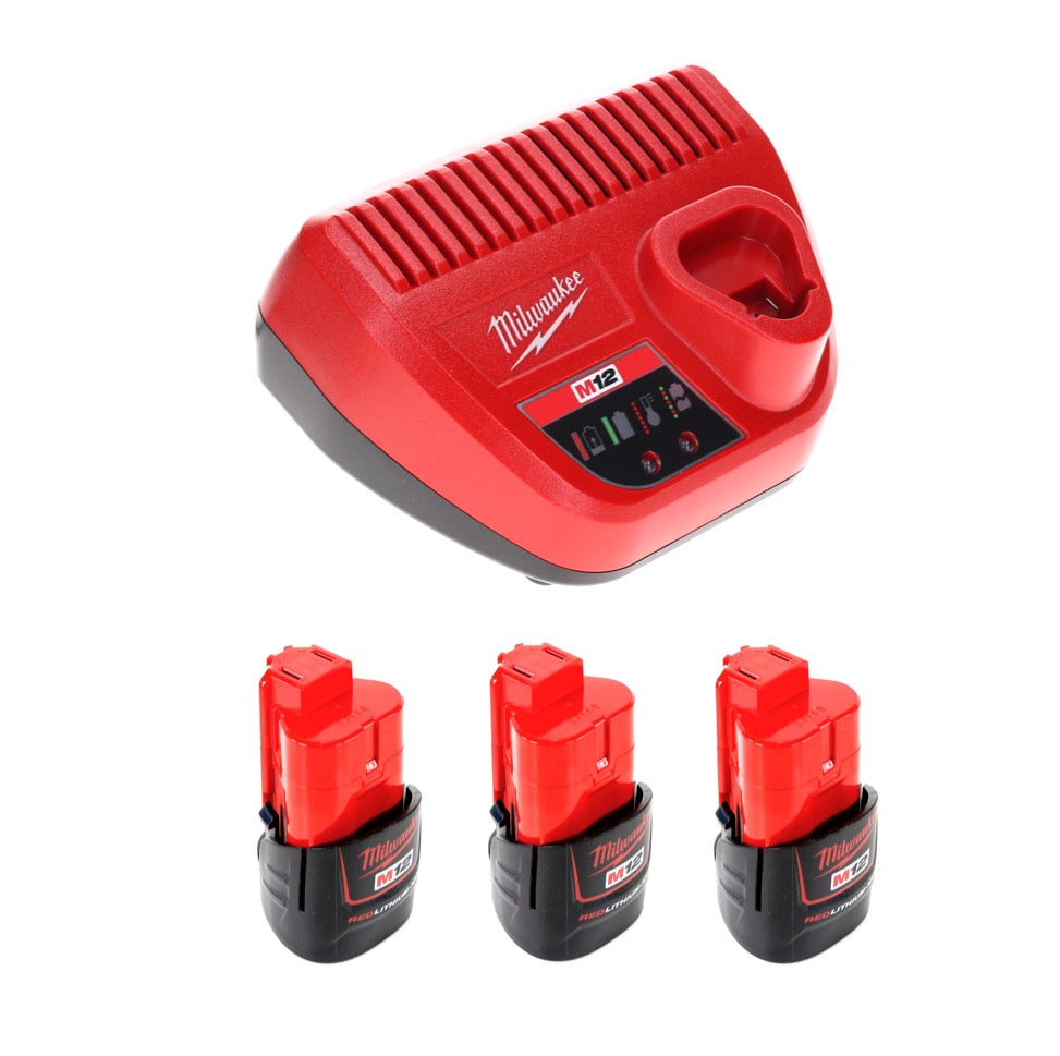 Milwaukee Akku Starter Set 12 V mit 3x Akku 1,5 Ah + M12 C12C Ladegerät