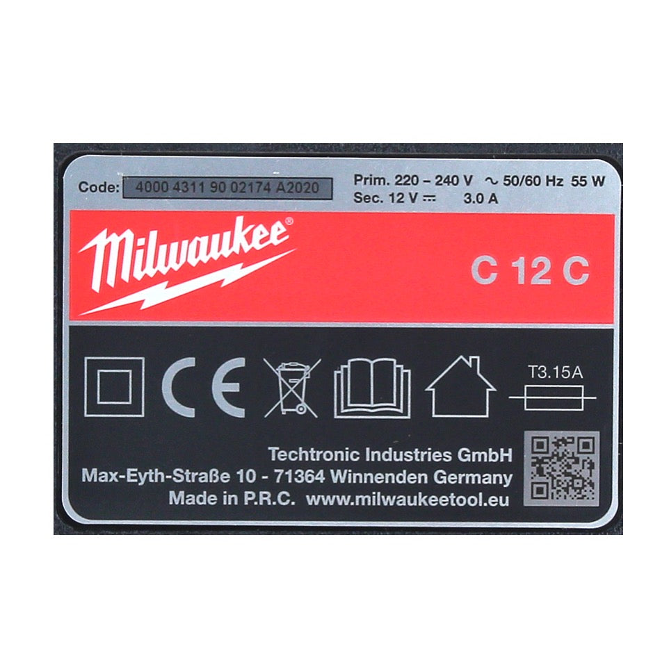 - 1x Milwaukee M12 C12C Ladegerät 12 V