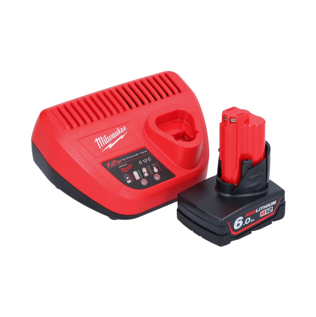 - 1x akumulator wsuwany Milwaukee M12 B6 12 V 6,0 Ah Li-Ion