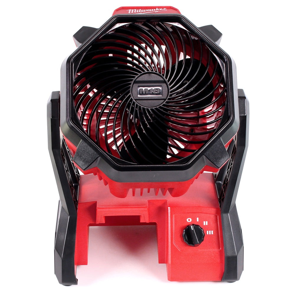 Dieser praktische Ventilator aus dem Hause Milwaukee kann, je nach Bedarf, mit M18™ REDLITHIUM-ION™ Akkus oder mit 220-240 V Wechselspannung betrieben werden. Eine 3-stufige Luftvolumenstromeinstellung sort für die richtige Auswahlmöglichkeit der Luftstromstärke. Er ist optimiert für 3,6 x 4 m Räume. Der Kopf ist bis zu 120° vertikal rotierbar. Das Gerät ist kompakt designt mit integriertem Tragehandgriff - so kann das Gerät divers verwendet und flexibel transportiert werden. Es ist zu 100% systemkompatibel mit dem Milwaukee® M18 Produktprogramm.