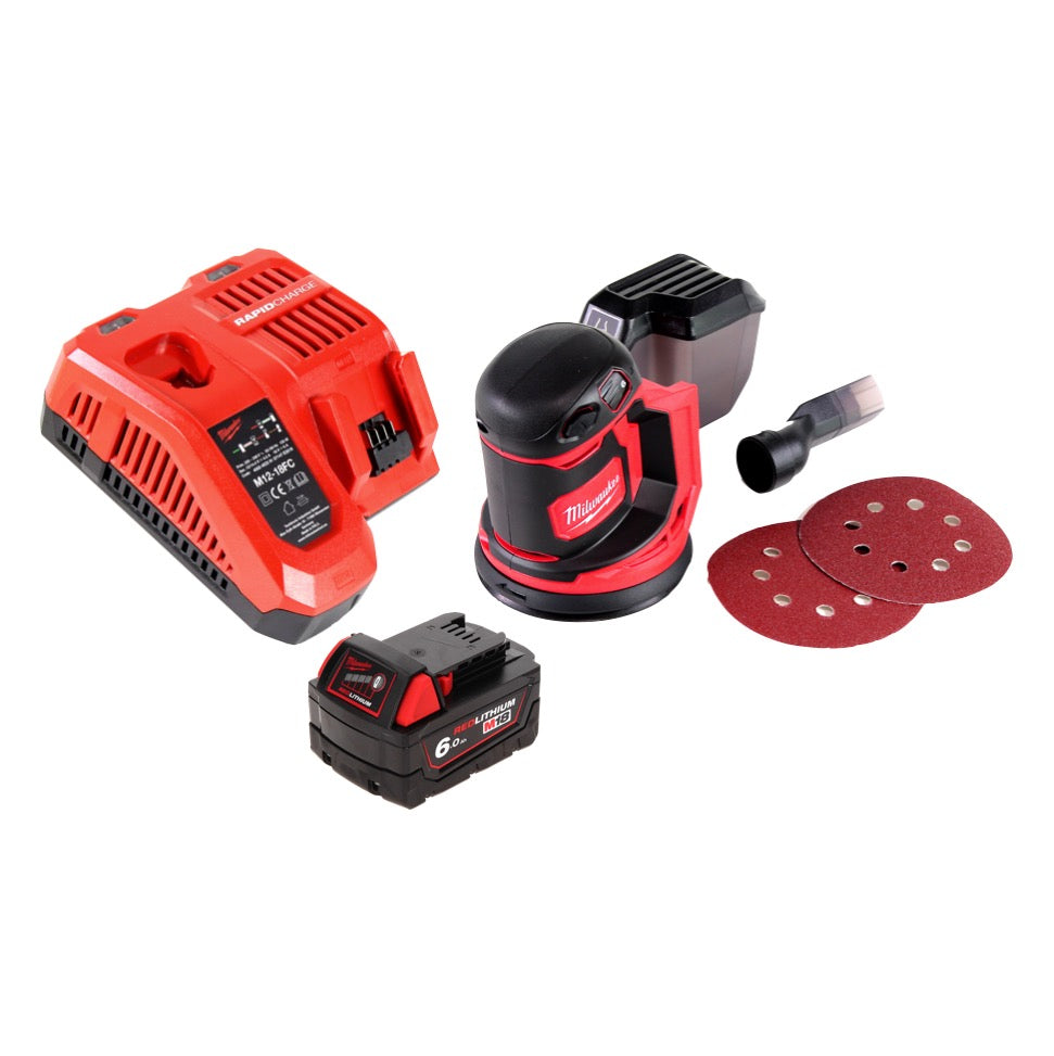 Milwaukee M18 BOS125-601 FC Akku Exzenterschleifer 18 V 125 mm + 1x Akku 6,0 Ah + Ladegerät