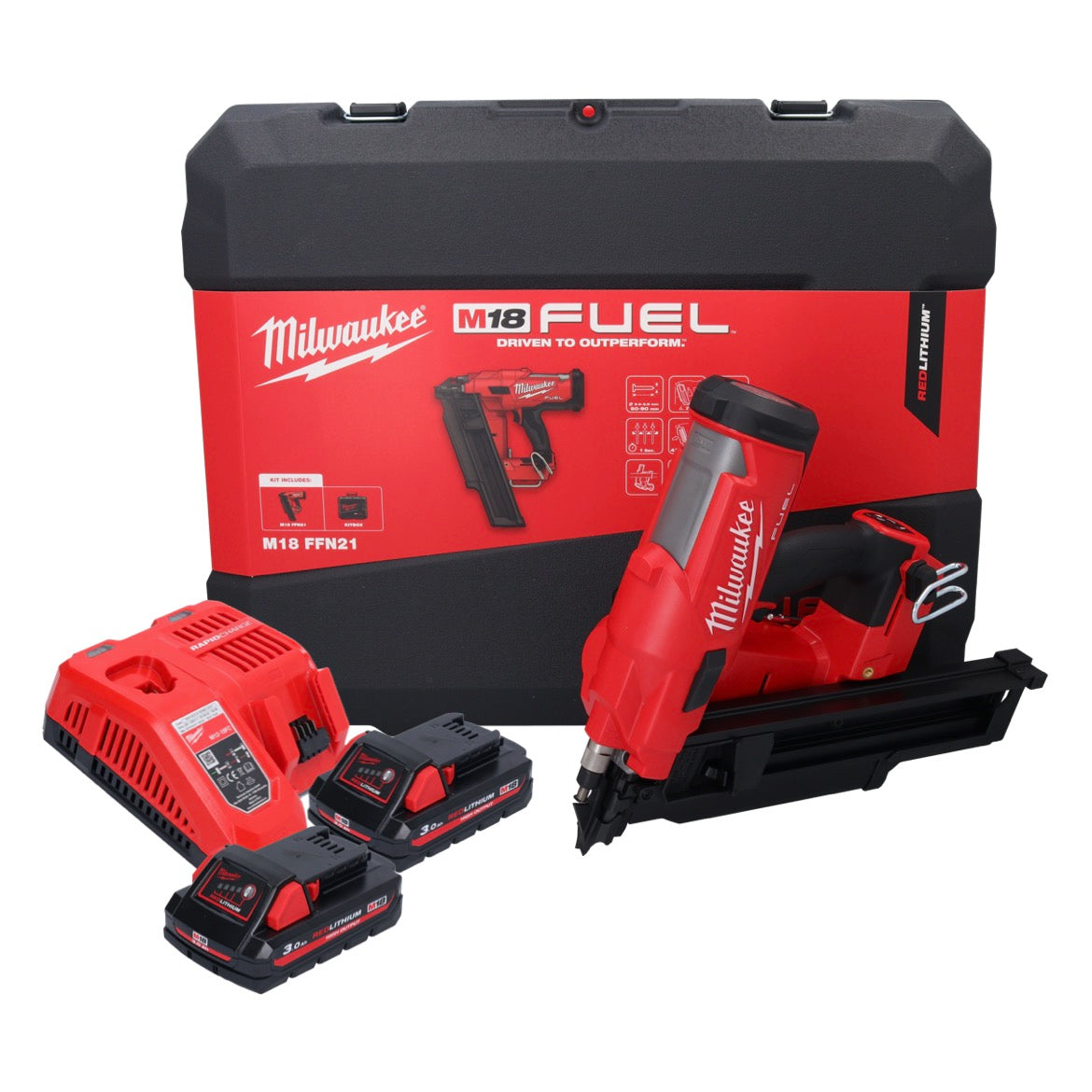 Milwaukee M18 FFN21-302C gwoździarka akumulatorowa 18 V 50 - 90 mm bezszczotkowa + 2x akumulator 3,0 Ah + ładowarka + walizka