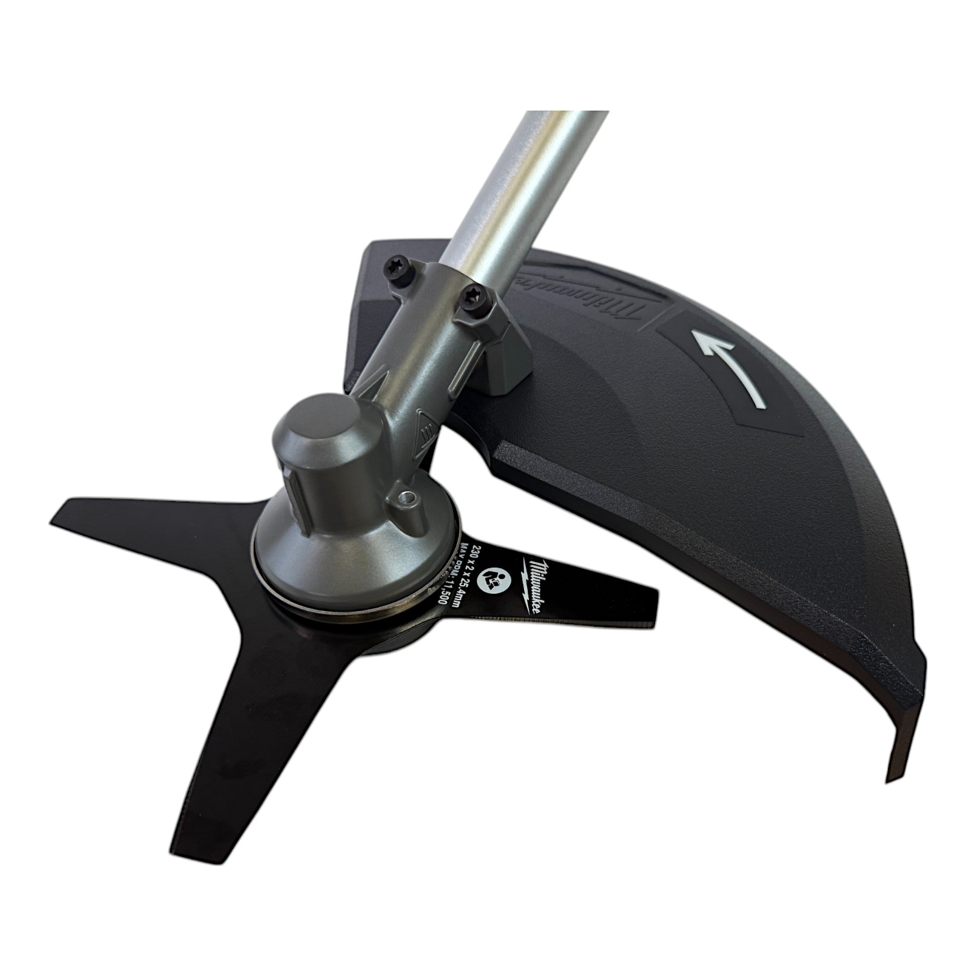 Przystawka do kosy Milwaukee M18 FOPH-BCA została specjalnie zaprojektowana do wymagających prac związanych z oczyszczaniem i umożliwia łatwe usuwanie wysokiej trawy, chwastów, gęstego podszycia i krzewów. Dzięki 4-zębowemu ostrzu o średnicy 23 cm nawet mocno zarośnięte obszary mogą być oczyszczane wydajnie i precyzyjnie. Zoptymalizowana konstrukcja osłony ochronnej zapewnia większe bezpieczeństwo i kontrolę podczas pracy. Aby zapewnić wygodną i stabilną obsługę, przystawka jest wyposażona w drugi uchwyt, który zapewnia lepszy chwyt. Chroniony wał napędowy zwiększa również żywotność urządzenia i sprawia, że jest ono szczególnie wytrzymałe na intensywne użytkowanie. Urządzenie osiąga pełny gaz w mniej niż sekundę, co pozwala od razu pracować z pełną mocą. Przystawka jest kompatybilna z systemem mocowania Milwaukee M18 FUEL Outdoor Power Head QUIK-LOK i znacznie rozszerza zakres jej zastosowań.