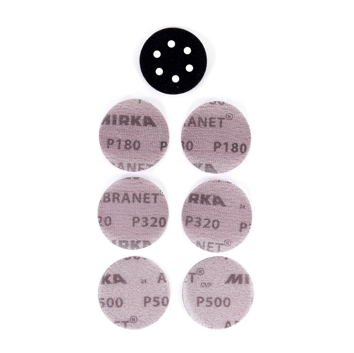Mirka DEROS 325CV 77mm Exzenterschleifer Hub 2,5mm 250W Brushless ( MID3252011 ) + 6x ABRANENT Schleifscheibe