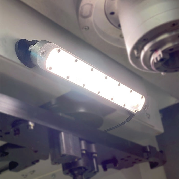 Wysokowydajna dioda LED w aluminiowej obudowie, wodoodporna - Równomierne oświetlenie 120 stopni, bez oślepiania i migotania, o niskim współczynniku odbicia - Podłączenie do sterownika maszyny 24 V lub zasilacza 24 V - Wodoszczelność IP67 aż do złącza zasilacza - "Made in Germany" - Elastyczny montaż