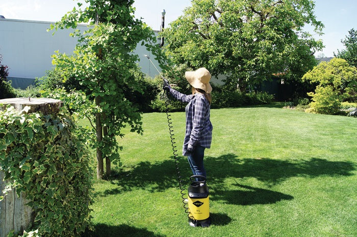 uszczelnienie FPM - ergonomicznie ukształtowany zawór odcinający z manometrem i sitkiem filtrującym - manometr tłokowy ze zintegrowanym zaworem bezpieczeństwa - mosiężna dysza spryskująca 40 cm - obracana o 360° - mosiężna dysza stożkowa - wąż spiralny 2,5 m - pompa z tworzywa sztucznego z ergonomicznym uchwytem - zintegrowany lejek do napełniania - praktyczny uchwyt ścienny - bon serwisowy