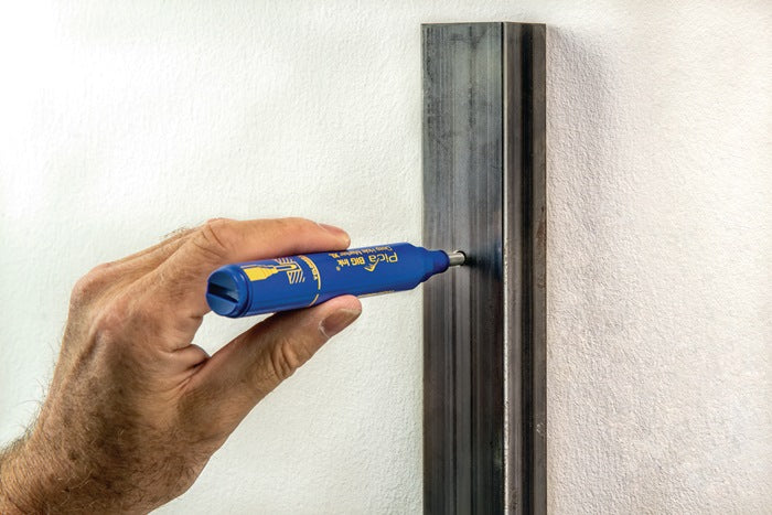 mit Tieflochmarkerfunktion · kombiniert kräftige und gut sichtbare Markierungen mit punktgenauem Anzeichnen, sogar durch Bohrlöcher ab Ø ≥ 5 mm hindurch · geeignet für alle glatten und trockenen Oberflächen wie z. B. für Glas, Metall, Kunststoff, Kartonage, Folien · weiche und formstabile Spezialspitze · Ein-Hand-Bedienung (der Köcher bleibt stets an der Hose stecken, die zweite Hand bleibt frei zum Halten des Werkstücks) · die "TWIST & REVIVE" Schreibspitze kann im nu komplett gedreht werden (ermöglicht die schnelle Wiederbelebung nach unsachgemäßer Nutzung) · großer XL-Tintenvorrat · das Griffrohr aus Edelstahl ermöglicht den Schreibdocht zu drehen, ohne die Finger mit Tinte zu verschmutzen Besonderheiten Schriftfarbe rot: sofort wasser- und wischfest · Tinten auf Alkoholbasis · licht- und wetterbeständig · mit Spiritus von glatten Flächen entfernbar · Tinten frei von Xylol und Toluol Hinweis: der Marker sollte stets Horizontal liegend aufbewahrt werden