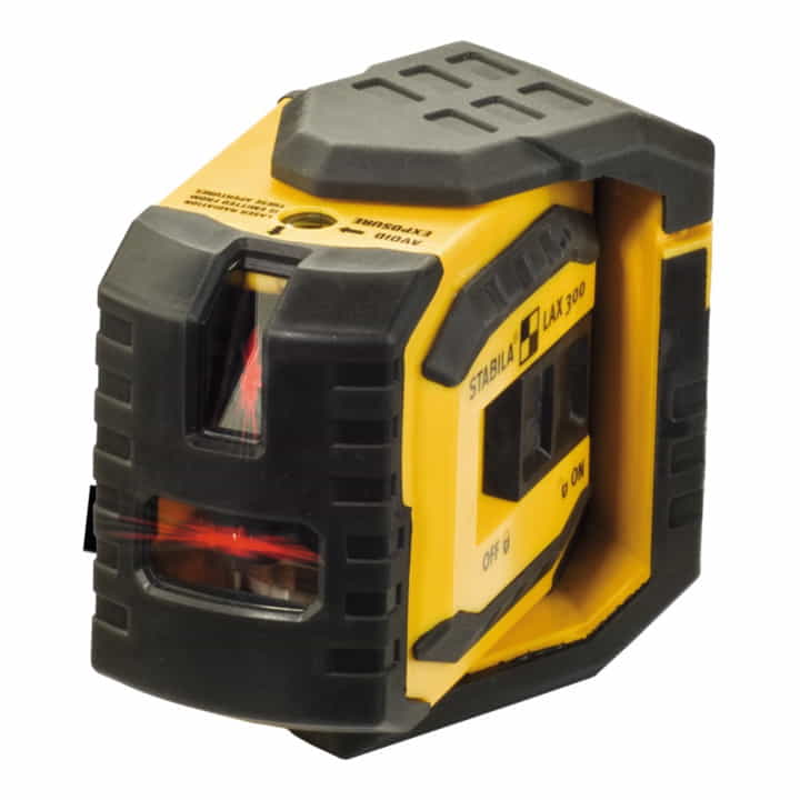 samopoziomujący laser krzyżowy z technologią wahadła - czerwone linie laserowe - 1 linia pozioma, 1 linia pionowa, punkty pionu w górę i w dół - punkty pionu do przenoszenia układu z podłogi na sufit - kompaktowa obudowa, którą można obracać o 360° z wysuwaną podstawą do regulacji wysokości - linia pionowa obejmuje prawie całe pomieszczenie - łatwa zmiana funkcji za pomocą jednego przycisku - różne opcje zastosowania: bezpośrednio na podłodze, na statywie, z magnesami, uchwytem ściennym lub z metalowymi oczkami - pochłaniająca wstrząsy osłona STABILA Softgrip - mocowanie statywowe 1/4″ Zapasowe baterie patrz nr art.-Nr: 4000 901 811