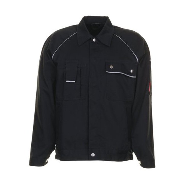 65% poliester / 35% bawełna - splot płócienny - ok. 320 g/m² - bardzo przewiewny, wyjątkowo wytrzymały, odporny na kurczenie materiał z tyłu zgodnie z normą DIN EN ISO 6330 - 2 wpuszczane kieszenie z materiału Cordura® - odblaskowe lamówki na wstawkach na rękawach i klapach kieszeni - 2 kieszenie na piersi, lewa z klapką i zatrzaskami, prawa z dodatkową kieszenią na telefon komórkowy - kieszeń na lewym rękawie z podwójnymi przegródkami na długopisy - elastyczny pas - ukryte zapięcie na zatrzaski z przodu - mankiety rękawów regulowane za pomocą zatrzasków Dostępne w rozmiarach na zamówienie: 42-64, 90-110 i 24-27