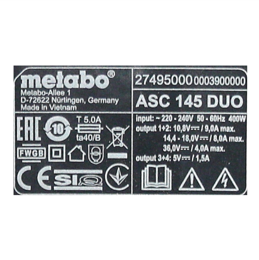 Podwójna szybka ładowarka Metabo ASC 145 DUO ( 627495000 )