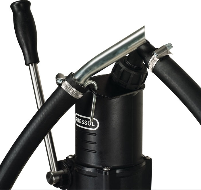 Niezwykle łatwy montaż beczki za pomocą adaptera beczki i systemu wtykowego - Możliwość swobodnego ustawienia w 12 pozycjach w siatce 30° - Obudowa pompy z tłokiem, dźwignią ręczną i plastikowym kolankiem wylotowym - Do beczek pionowych 60/200/220 l - Teleskopowa rura ssąca L. 355-955 mm - 2 gwinty: M64 x 4 mm i G2″ - Wąż tłoczny, 1500 mm, ze stalowym kolankiem wylotowym - Uchwyt węża - Do olejów do SAE 50, oleju napędowego, ropy naftowej, parafiny, gliceryny i nierozcieńczonego płynu niezamarzającego do chłodnic