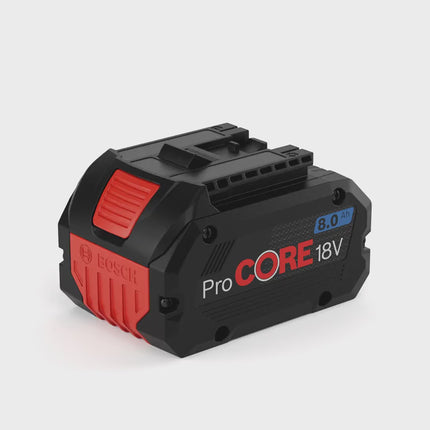 Bosch GBA ProCORE Professional to 18-woltowy akumulator wsuwany o pojemności 8,0 Ah, oparty na technologii litowo-jonowej. Technologia ProCORE imponuje wydajnością, która jest porównywalna z silnikiem o mocy 1600 W w narzędziu przewodowym, a tym samym zapewnia wystarczającą moc do najcięższych zastosowań z narzędziami bezprzewodowymi. Zapewnia zatem o 87% więcej mocy niż zwykłe narzędzia akumulatorowe 18 V i gwarantuje niezmiennie wysoką wydajność dzięki doskonałemu zarządzaniu ciepłem za pomocą systemu Bosch COOLPACK 2.0. Ten opatentowany przez firmę Bosch system chłodzenia akumulatorów jeszcze skuteczniej chroni je przed przegrzaniem i wydłuża ich żywotność o 135%. Akumulator jest kompatybilny ze wszystkimi narzędziami Bosch 18 V i posiada wskaźnik poziomu naładowania LED z przodu.