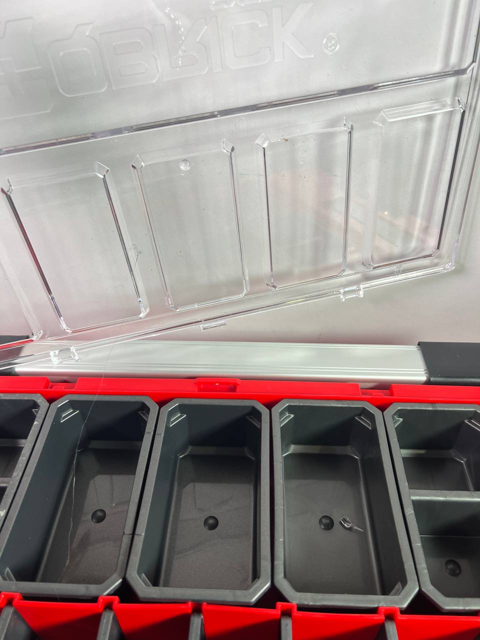 Prime 250 to duża skrzynka narzędziowa o pojemności 26 litrów. Wodoodporna i pyłoszczelna konstrukcja (IP66), poliamidowe zapięcia z metalowymi paskami oraz wzmocniona konstrukcja gwarantują ochronę przechowywanych wewnątrz narzędzi. Dzięki dodatkowemu użebrowaniu skrzynki PRIME mogą wytrzymać nacisk do 120 kg, a tym samym oferują możliwość tworzenia wygodnych platform roboczych. Skrzynka 250 jest wyposażona w 3 regulowane przegrody i praktyczną półkę. Pokrywa organizera EXPERT jest wyposażona w 5 przegródek i 7 regulowanych przegródek do organizowania zarówno małych, jak i długich akcesoriów warsztatowych. Szeroki, ergonomiczny uchwyt z aluminiowym profilem zapewnia wygodny transport. RED ULTRA HD Custom to specjalna edycja produktów Qbrick System PRIME, które zostały wykonane z ultra wytrzymałego tworzywa sztucznego, które jest niezwykle odporne na uszkodzenia mechaniczne. Przeprowadzone testy udarności potwierdzają jego wyjątkową trwałość, nawet w warunkach poniżej 0°C. Wbudowane w korpus puszki gwintowane wkładki M8 dają możliwość dostosowania puszki do potrzeb użytkownika (kastomizacja) #letscustomize.