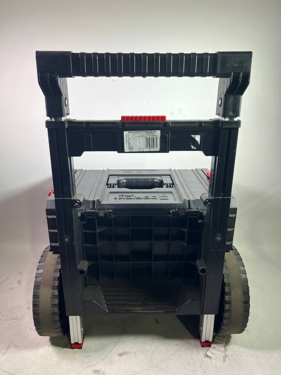 Qbrick System PRO Cart 2.0 Plus to mobilna skrzynia na kółkach. Wyposażona w zdejmowany podwójny teleskopowy uchwyt i wygodną platformę na stopy, zapewnia bezpieczne trzymanie i łatwe manewrowanie na stosunkowo niewielkiej przestrzeni. Duże - 9-calowe - koła pokryte są grubą warstwą gumy, co zapewnia bezproblemową trakcję nawet w najtrudniejszych warunkach. O bezpieczeństwo przewożonych narzędzi dbają także solidne elementy mocujące oraz boczne łączniki wykonane z wytrzymałego poliamidu. Zwieńczeniem całości jest wodoszczelna i pyłoszczelna konstrukcja oparta na elastycznej uszczelce zamontowanej w pokrywie.