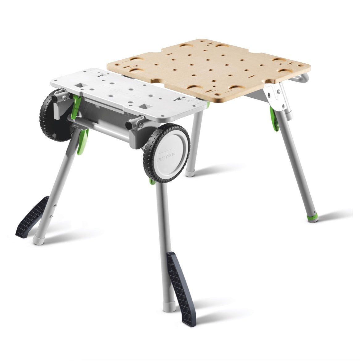 Rama podstawy UG-CSC-SYS to idealne rozwiązanie 3 w 1 do prac montażowych: Jest to wytrzymały wózek workowy, który z łatwością transportuje Systainery w wieży o wadze do 80 kg. Służy również jako mobilny stół roboczy - o powierzchni 58 x 58 cm z perforowaną płytą do mocowania elementów roboczych, który może wytrzymać obciążenie do 100 kg. Dzięki składanym nogom może być używany elastycznie - po ustawieniu wysokość robocza jest podnoszona do 90 cm, a nogi pozostają złożone do prac związanych z układaniem podłogi. W połączeniu z akumulatorową pilarką stołową CSC SYS 50 stanowi praktyczną alternatywę dla kozłów i idealnie nadaje się do cięcia wzdłużnego, poprzecznego i pod kątem. Wykorzystaj zalety ramy podstawy UG-CSC-SYS i ułatw sobie kolejne prace montażowe!