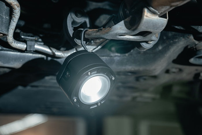 Akumulatorowy reflektor roboczy z diodą COB LED 10 W - tryb 100% + 50% - zintegrowany akumulator litowo-jonowy z elektroniką bezpieczeństwa - chroni przed przeładowaniem i głębokim rozładowaniem - zasięg światła do 52 m - wskaźnik pojemności akumulatora z diodami LED - sprawdź dostępną pojemność - bryzgoszczelny - temperatura barwowa 6500 K (światło dzienne) - przegub kulowy obracany o 360° i hak do zawieszania obracany o 360° - zintegrowane magnesy w podstawie