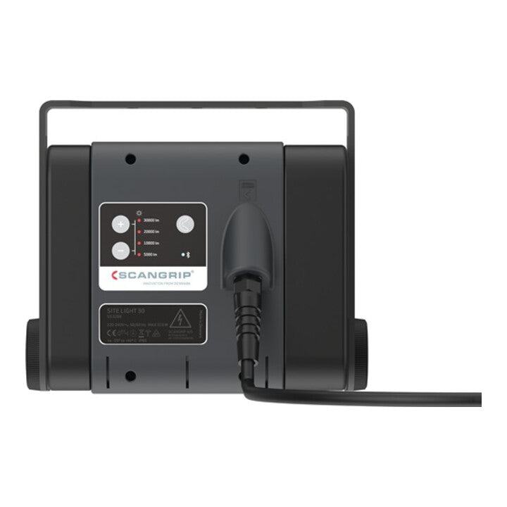 Reflektor budowlany do oświetlania dużych powierzchni - szeroki kąt wiązki 120° - z funkcją ściemniania - sterowanie światłem BLUETOOTH umożliwia włączanie/wyłączanie światła roboczego i czterostopniową regulację mocy światła za pomocą telefonu komórkowego - zintegrowany uchwyt do przenoszenia - łatwy montaż na statywie na słupie