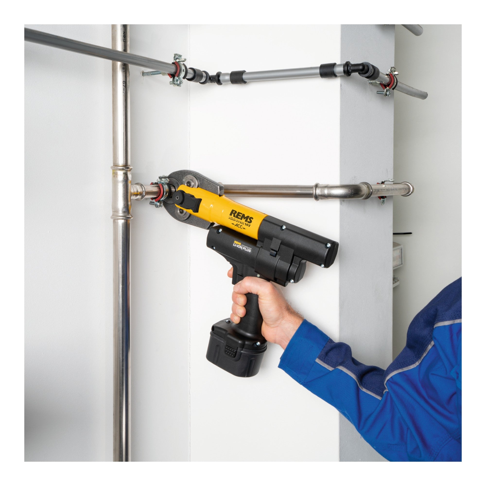 Akumulatorowa prasa promieniowa Rems AREMS Mini-Press 14V ACC to idealne rozwiązanie do szybkiego i bezpiecznego prasowania. Dzięki super lekkiej, super małej i super poręcznej konstrukcji jest idealna do użytku mobilnego. Dzięki wymuszonemu działaniu, zaciskanie odbywa się w kilka sekund i gwarantuje niezawodny rezultat. Automatyczna blokada szczypiec zaciskowych zapewnia łatwą obsługę i dodatkowe bezpieczeństwo. Zaciskarka promieniowa jest kompatybilna z kompletnym asortymentem szczypiec zaciskowych REMS mini/pierścieni zaciskowych, które nadają się do wszystkich popularnych systemów połączeń zaciskowych.