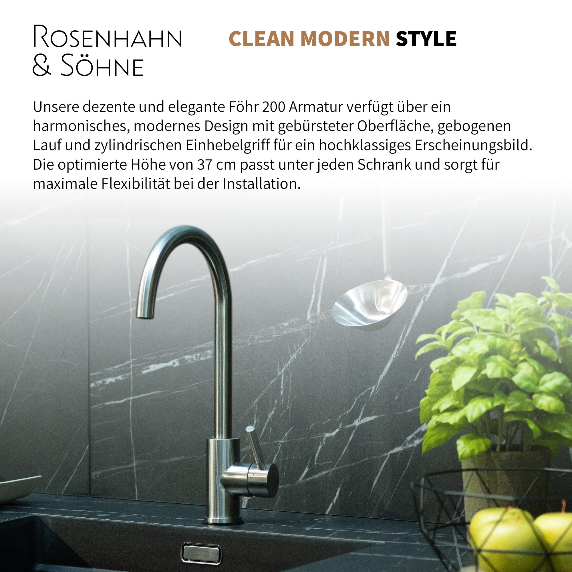 Rosenhahn & Söhne Föhr 200 bateria kuchenna obrotowa 360° - bateria kuchenna [stal nierdzewna szczotkowana] - 2-drożna regulowana bateria zlewozmywakowa + węże przyłączeniowe