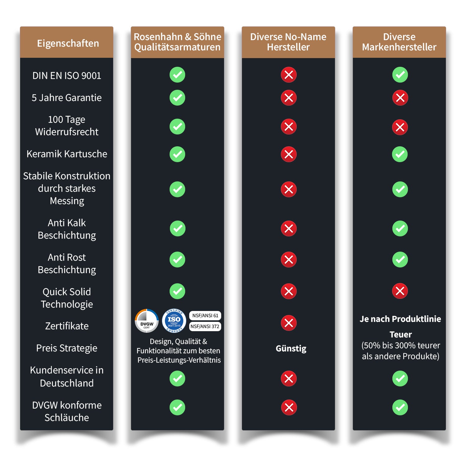 Bateria kuchenna Föhr 200 marki Rosenhahn & Söhne łączy w sobie trwałość i nowoczesne wzornictwo. Obrotowy zakres obrotu ułatwia dotarcie do dowolnego punktu wewnątrz i na zewnątrz zlewu. Może być również używana z dowolnej strony i można ją łatwo odchylić, aby uzyskać więcej miejsca! Elegancki design ze szczotkowanej stali i wysokiej jakości mosiężne wykończenie sprawiają, że nasza bateria zlewozmywakowa przyciąga wzrok. Stop chroni również przed osadzaniem się kamienia i rdzą. Szczegółowa i ilustrowana instrukcja obsługi pomoże w bezproblemowej instalacji baterii.