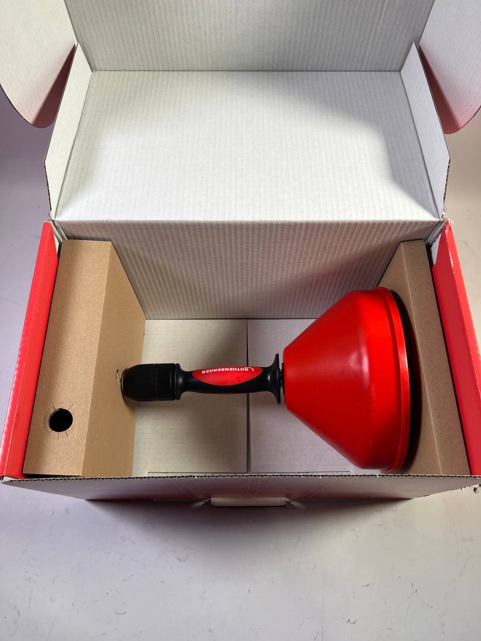 Ręczna myjka do rur Rothenberger ROSPI H+E Plus oferuje szybkie i skuteczne rozwiązanie do usuwania zatorów w rurach łączących umywalki, zlewy, brodziki i wanny. Nadaje się do rur o średnicy od 20 do 50 mm (3/4-2 cale) i zasięgu do 7,5 metra. Przełączenie z trybu ręcznego na elektryczny zajmuje zaledwie kilka sekund, zapewniając maksymalną elastyczność. W trybie elektrycznym narzędzie zapewnia pewny chwyt nawet przy wyższych prędkościach. Blokada spiralna z elastyczną spiralą i zintegrowaną głowicą mopa umożliwia usuwanie brudu z trudno dostępnych miejsc. Odporny na uderzenia, bryzgoszczelny plastikowy pojemnik na spiralę zapewnia dodatkową wytrzymałość i ochronę przed zabrudzeniami. Dzięki sześciokątowi do mocowania w uchwycie wiertarskim, narzędzie można łatwo zintegrować z wiertarką, aby zapewnić jeszcze większą moc.