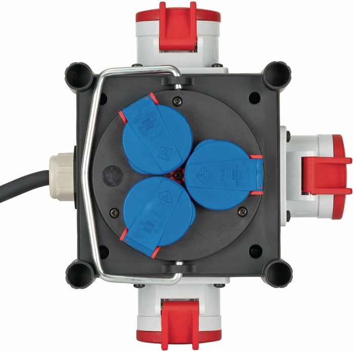 kompaktowa konstrukcja - do stałego użytku na zewnątrz - IP44 - odporność na temperaturę obudowy: -30°C do + 80°C - wysokiej jakości gniazda zgodne z VDE 0620-1 - solidny metalowy uchwyt do przenoszenia