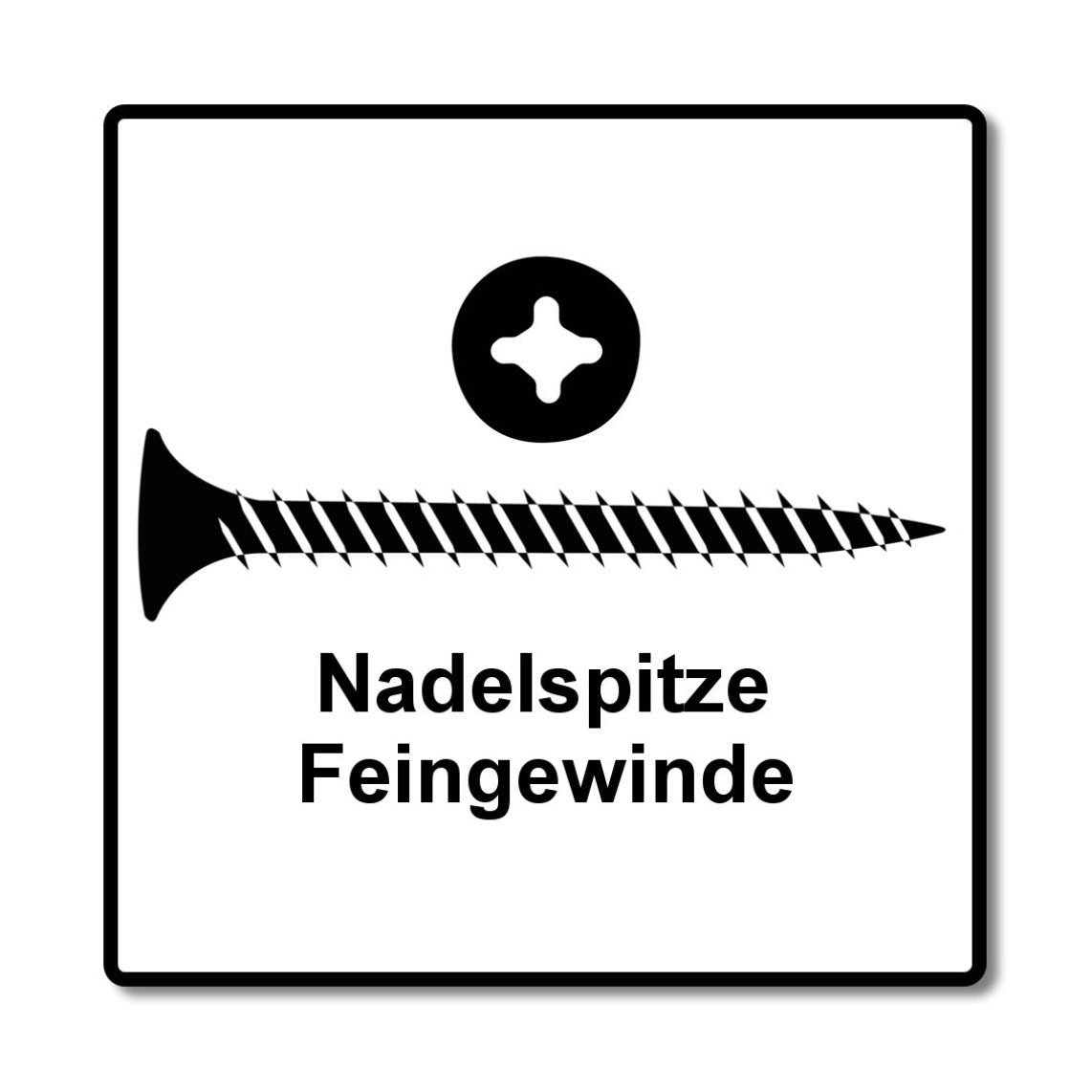 Die Schnellbauschrauben eignen sich zur Befestigung von Gipskarton auf Metallprofile bis 0,7 mm Stärke. Das Blechgewinde der Schrauben sorgt dabei für die schnelle Verschraubung und den sicheren Halt bei der Verschraubung in verstärkte Metallprofile. Das Vollgewinde ermöglicht die Aufnahme hoher Zugkräfte und einen höheren Anpressdruck beim Verschrauben. Der Trompetenkopf dient der Vermeidung der Zerstörung der Pappschicht und gibt der Platte einen sicheren Halt. Ein wesentlicher Vorteil des Kreuzschlitz H2 ist die optimierte Kraftübertragung zwischen Schraube und Werkzeug. Dadurch wird die Materialbeanspruchung vermindert und der Ansatz für die Kraftübertragung erhöht. Durch die zwei kleinen Schneiden der Bohrspitze eignen sich die Schrauben vor allem in der Verwendung zur Befestigung von und in Metallen. Die auffällige schwarze Färbung ist Folge einer Phosphatierung, ein Korrosionsschutz, der dafür sorgt, dass die Schrauben gegen Feuchtigkeit resistent sind. Die Schnellbauschrauben sichern immer den perfekten Halt der Platten auf dem Ständerwerk und lassen sich millimetergenau versenken.